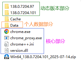 【A】同名Chrome文件夹覆盖即可。粉色部分会自动更新替换、橙色部分为用户个人数据文件夹