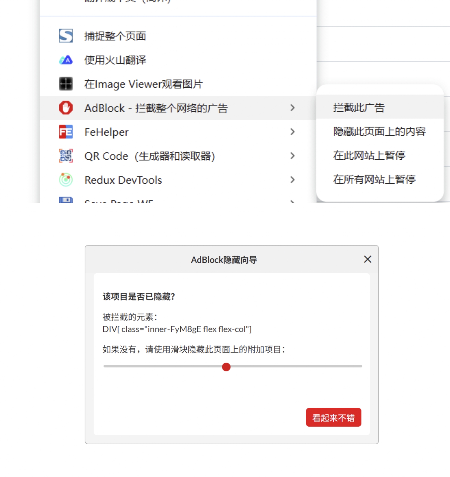 整体流程,和我们油猴开发者,找广告控件选择器,然后删掉的流程差不多,只是浏览器端的这个需求,都被 adblock 包办了。